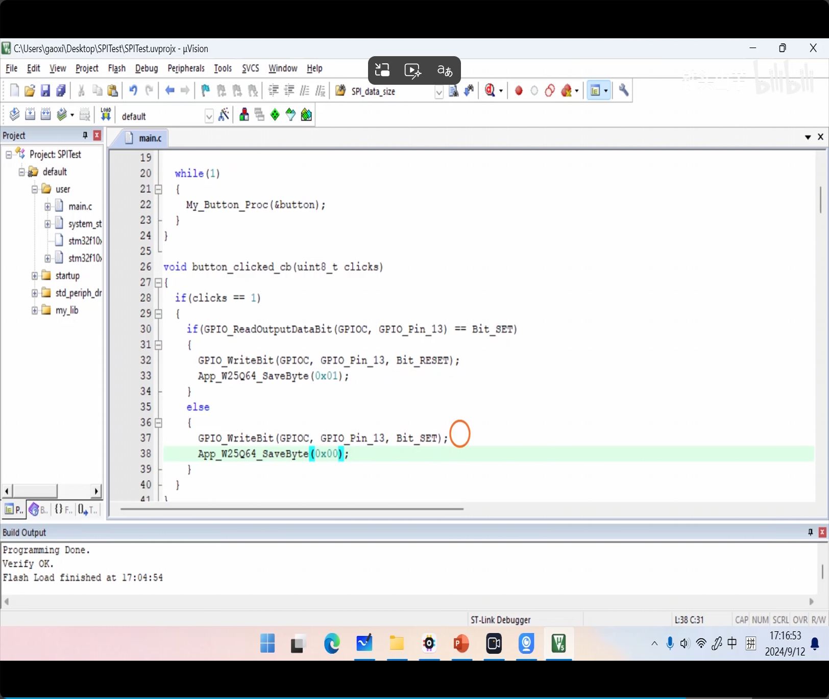在回调函数中加入 LED 状态变化后保存进入 W25Q64