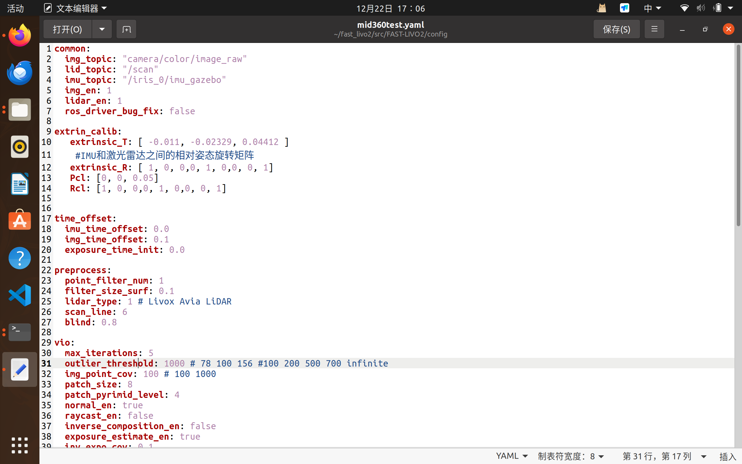 config文件夹里有雷达和相机的yaml文件,主要是内参