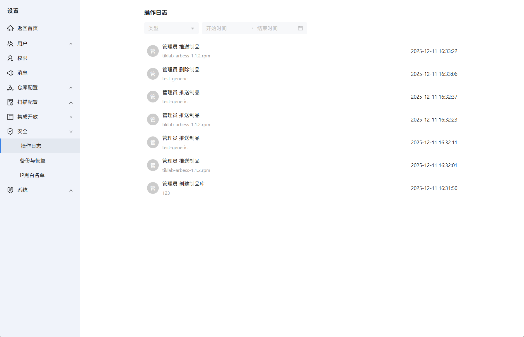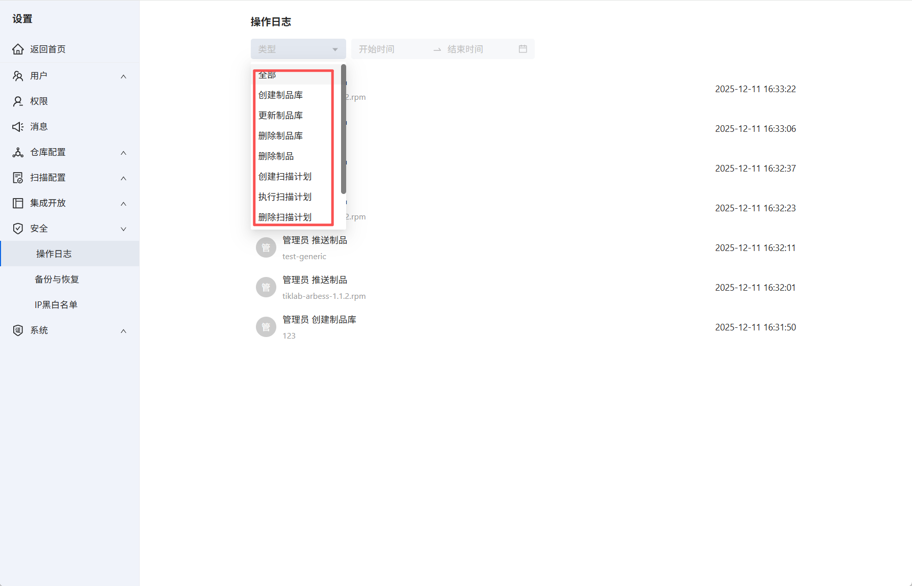 进入Hadess系统设置→安全→操作日志。