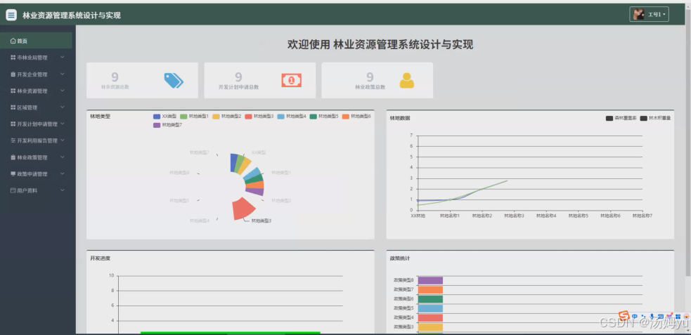 系统管理模块负责维护系统的稳定性和安全性,包括系统日志、轮播图管理、林业调查分类等,确保系统的高效运行和数据的安全。用户资料模块则为用户提供个人信息的查看和编辑功能,包括密码修改等,增强用户体验。
