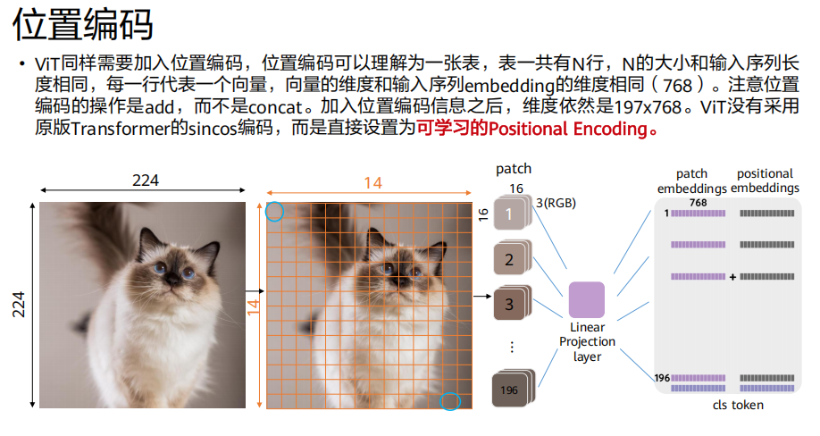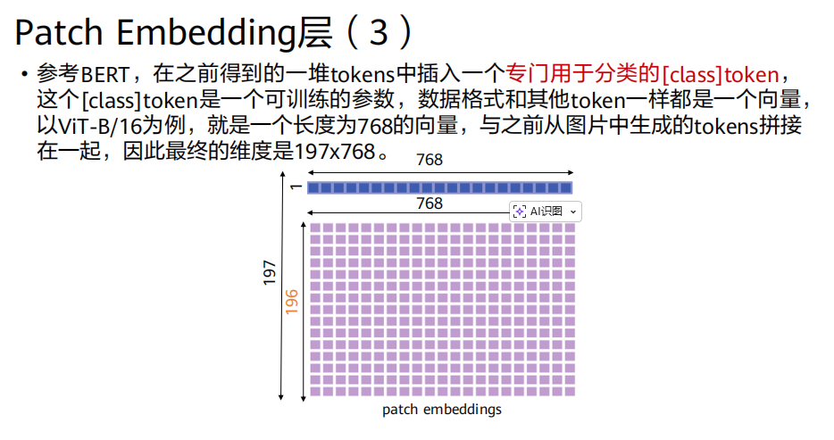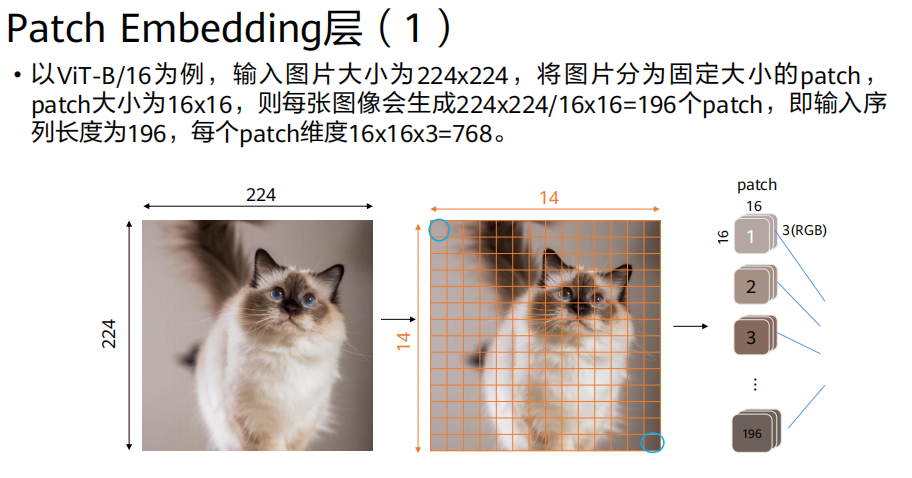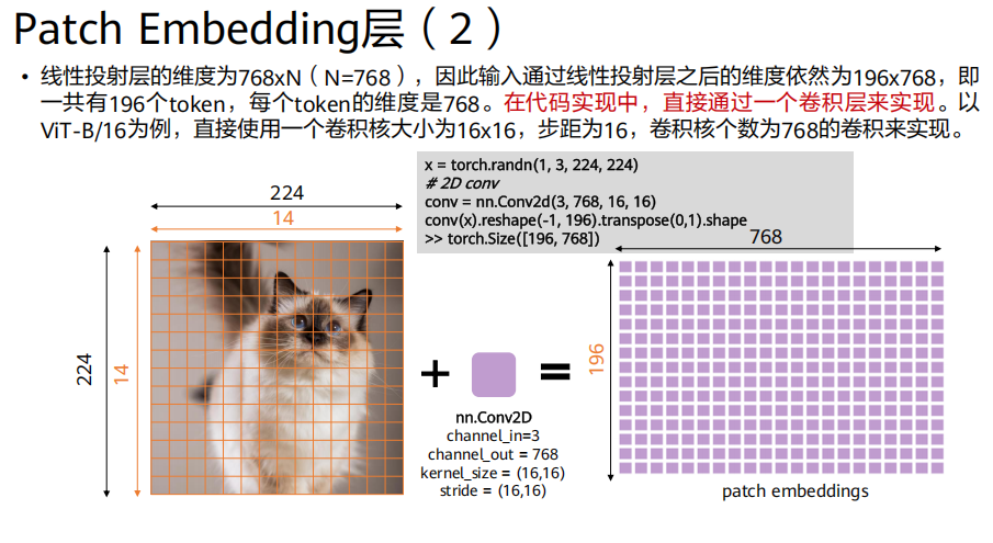 768维向量 → 得到196x768的矩阵。拼接