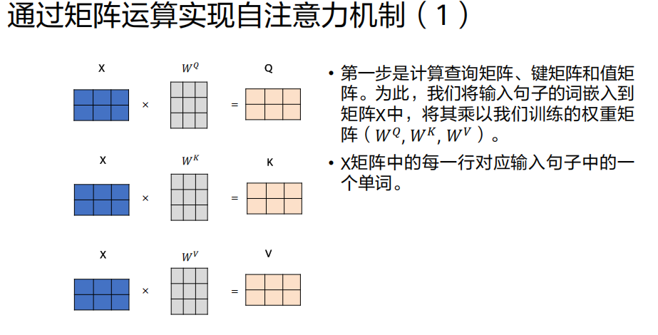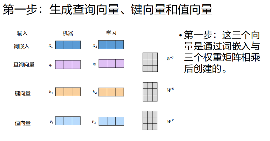 - 三个不同的、可训练的权重矩阵