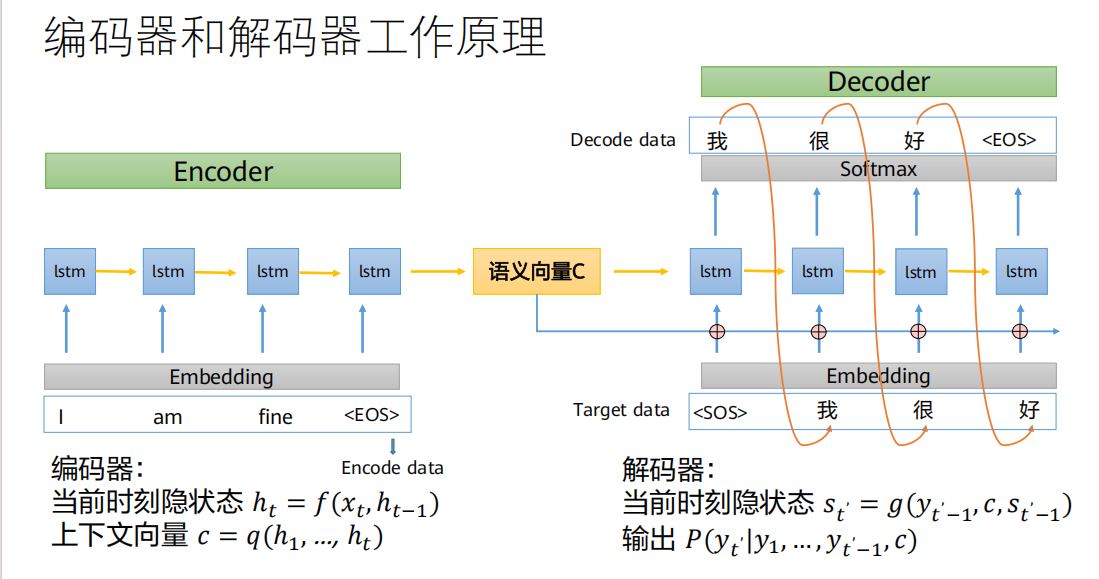 c中,解码器就靠这个向量c来生成整个输出序列。输入(Encode data) :