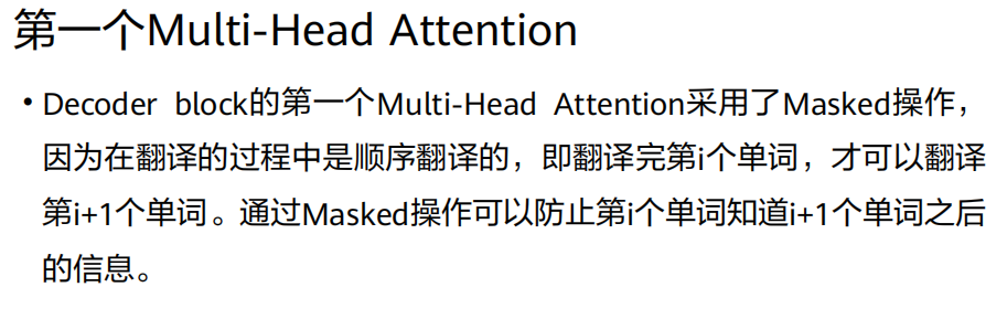 带掩码的多头自注意力层(Masked Multi-Head Self-Attention):确保当前位置只能关注到已生成的序列,防止信息泄漏。