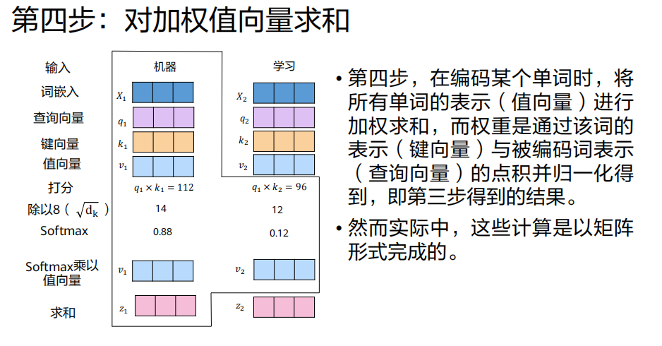 操作 :用第二步得到的权重,对对应的值向量(Value)