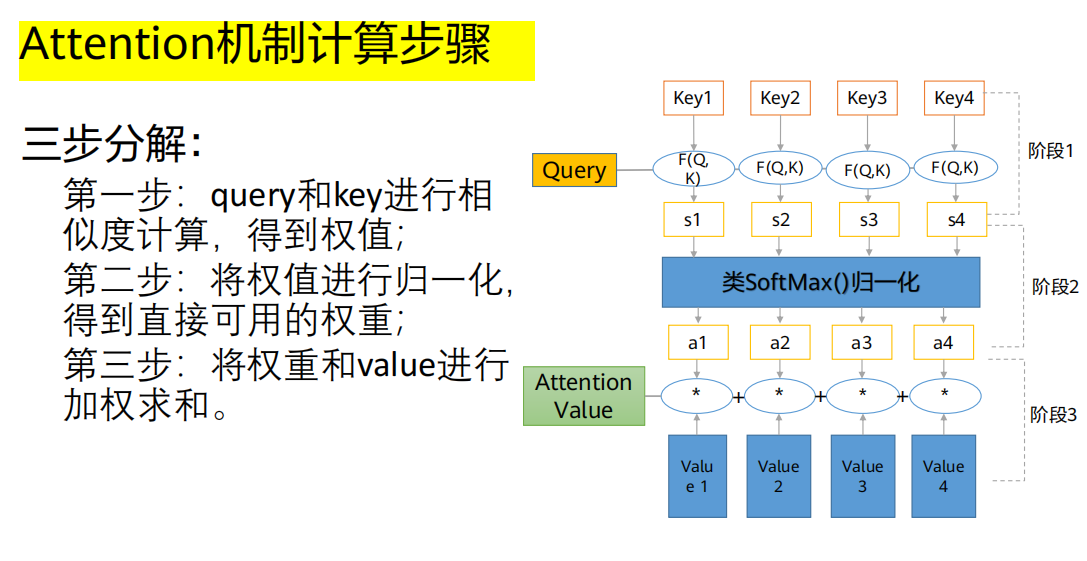 Query ()去和每一个输入单词的Key ()进行相似度计算F(),得到一个分数。这个分数越高,说明当前输出越应该关注那个输入词。