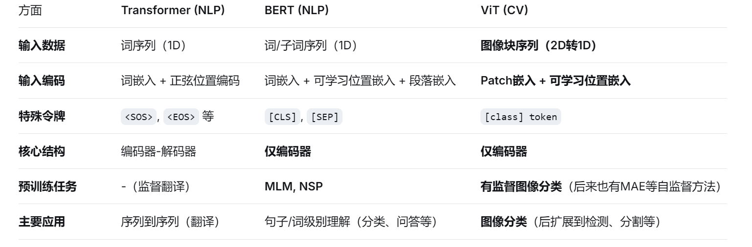 对比 :原始的Transformer是一个完整的编码器-解码器(Encoder-Decoder) 架构,用于序列到序列的任务(如翻译)。
