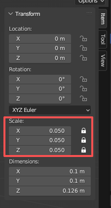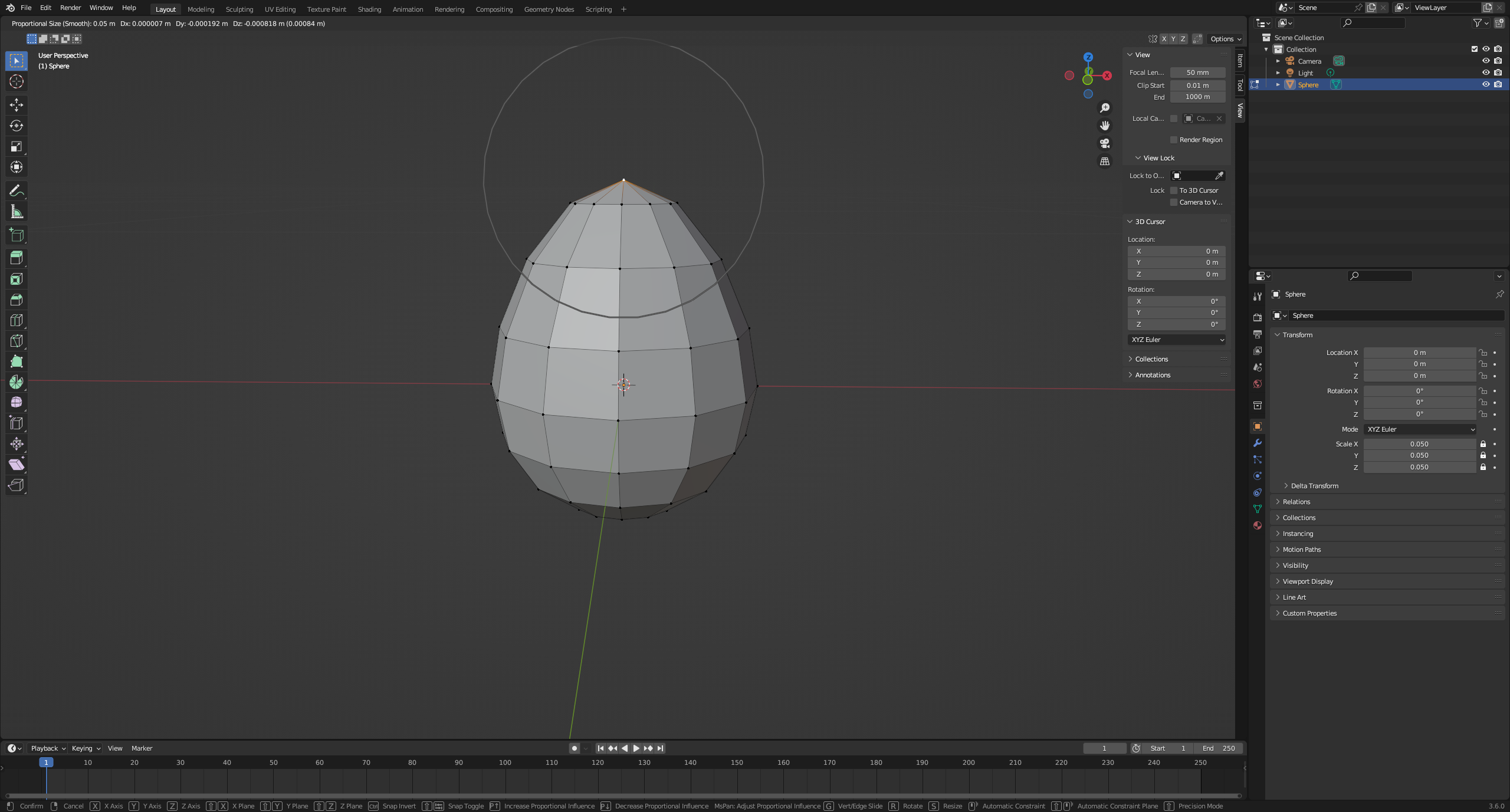 这个时候进入物体模式,把物体缩放0.05倍。这时候我们再回到编辑点模式,对一个点按G,不能只对一个点变换了,整个物体都会移动!怎么解决呢?