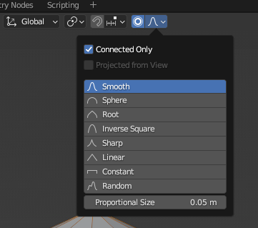 shift+A建了一个球体,该球体默认直径为2m,进入编辑模式的点模式,点亮软选择+connected only: