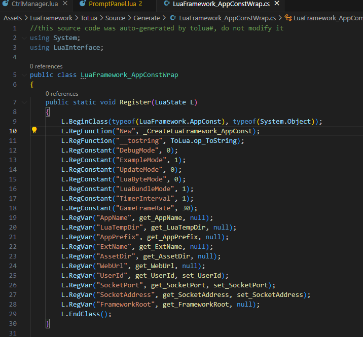 2.3 LuaFramework_AppConstWrap类中做了对AppConst的类名,方法,变量,常量的注册