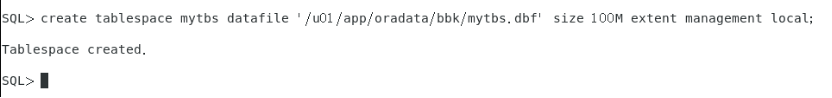 8. 创建属于用户的表空间,以后的数据可以存放在此表。