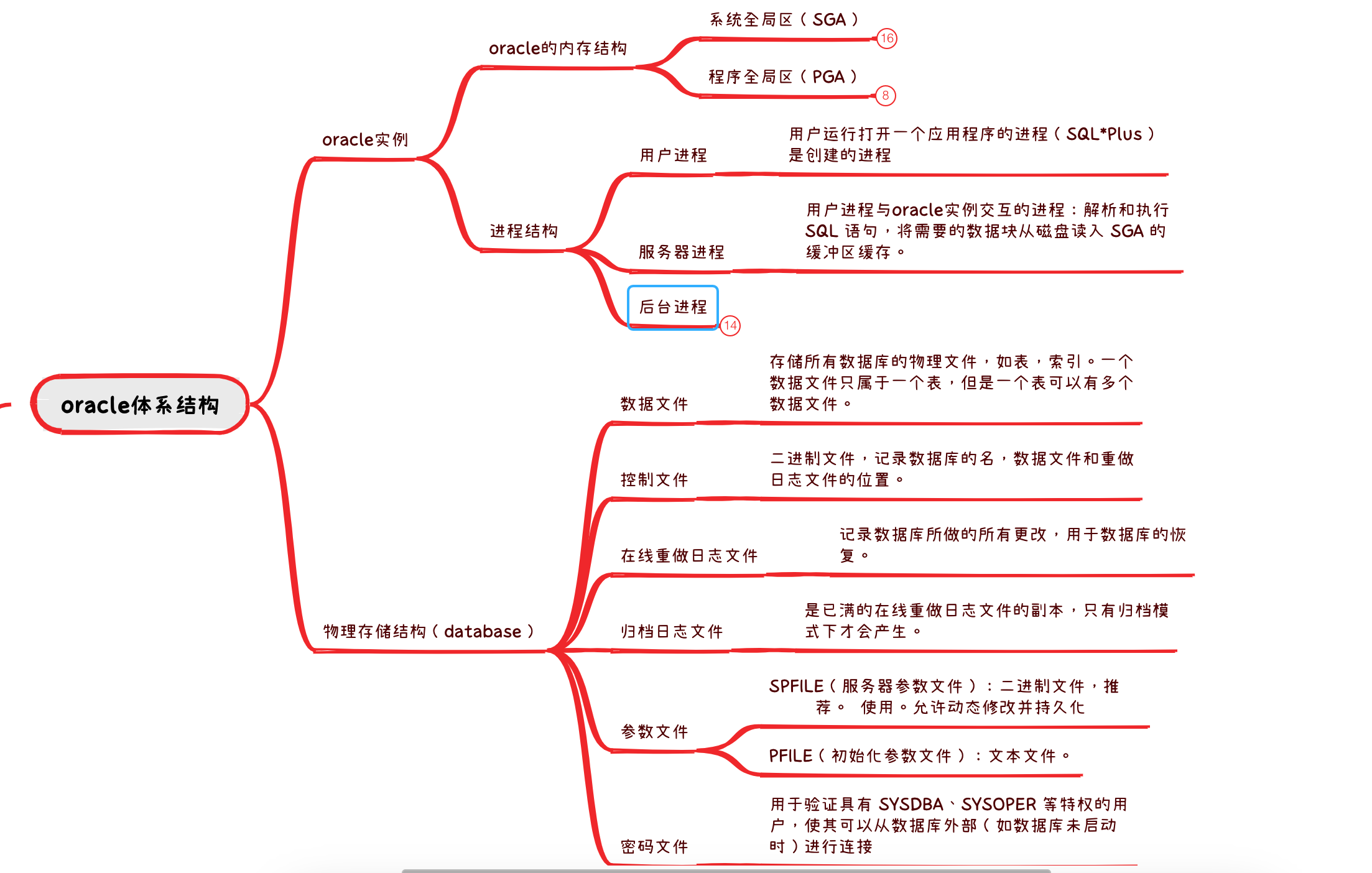具体的每个内存里功能以及进程的作用可以看我前面写的"oracle的内存架构学习"