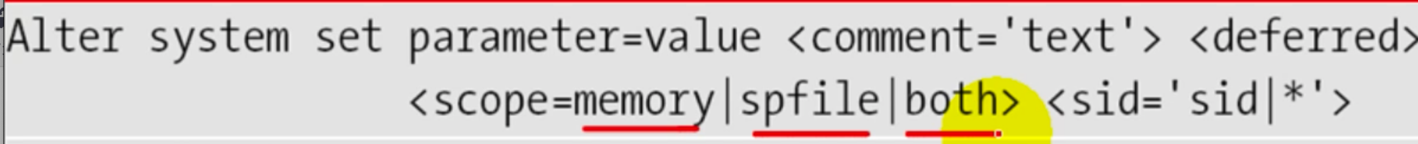 修改或者更新spfile或者是内存里面的参数信息格式:
