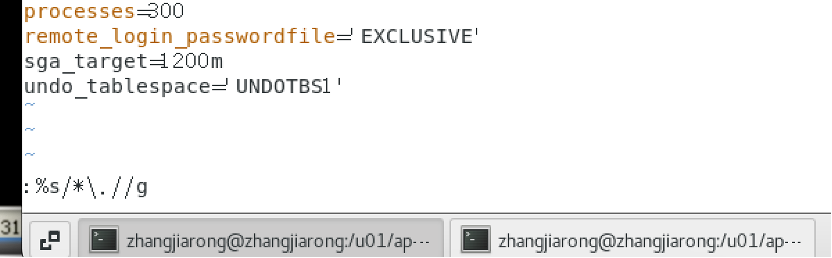 2. 利用现有的数据库的spfile创建一个新数据库的pfile(1.可以用sql创建---create pfile from spfile;可以strings一个spfile文件复制到一个新创的pfile里,然后进行一些替换处理)最后得到一个pfile。