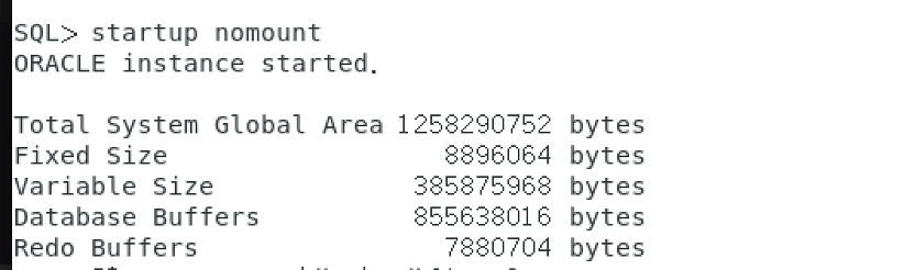 Nomount:启动后台进程和一些基本的数据块(也就是划分出一些共享内存),用于创建数据库或恢复控制文件。