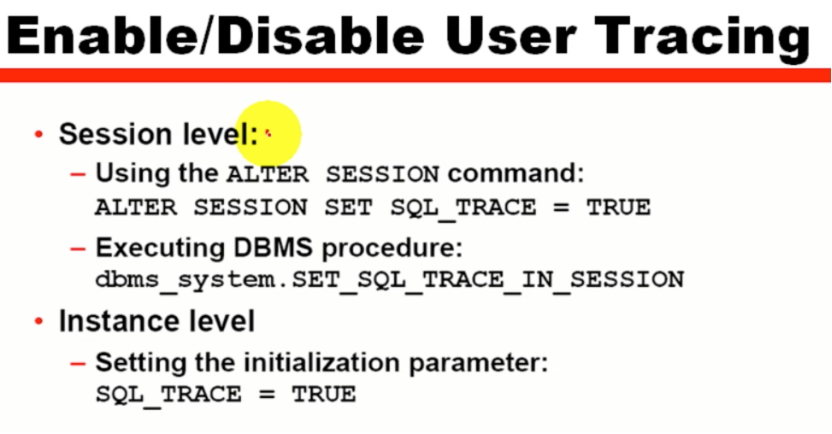 EXEC DBMS_SESSION.SESSION_TRACE_DISABLE;