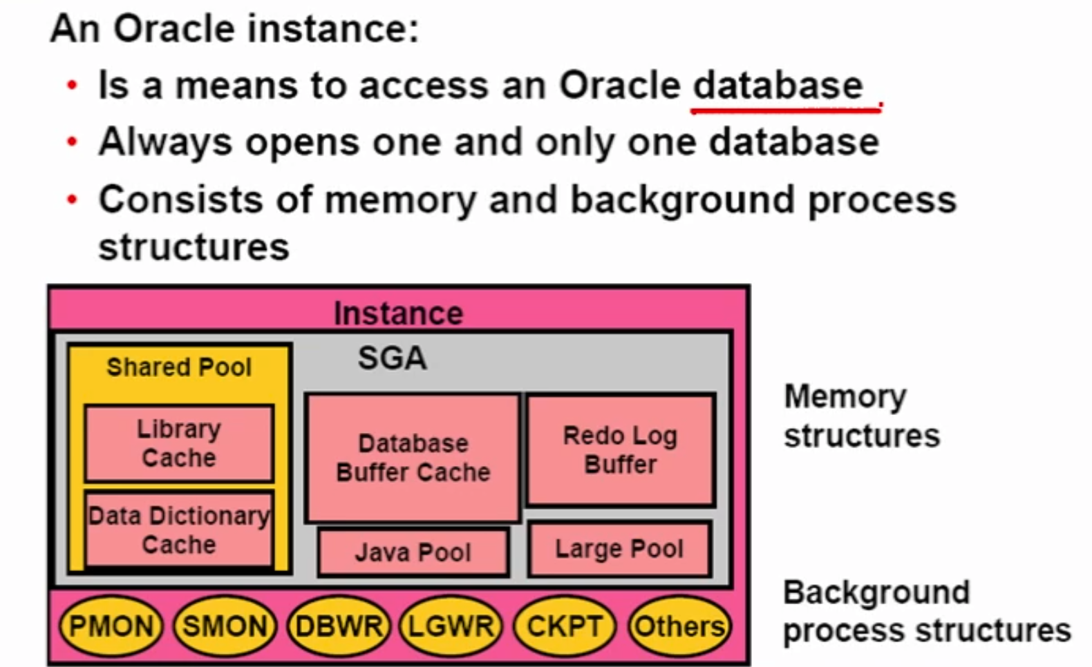 一个instance对应一个database,但是一个database可以多个instance来访问它,但是一个instance只能一次访问一个database。