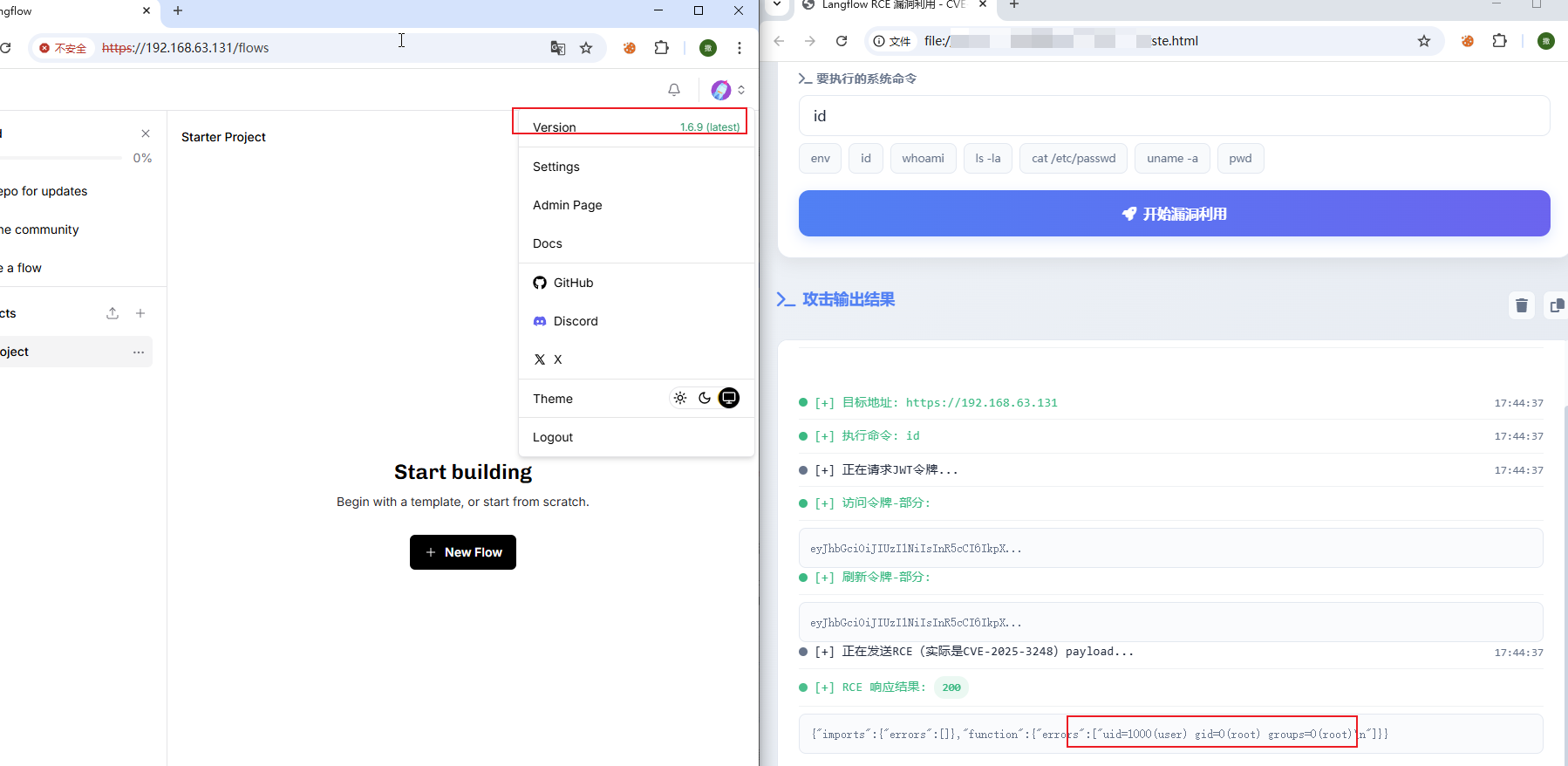 小结 :本次漏洞核心其实是cors跨域分享导致复用CVE-2025-3248,3248漏洞修复其实是对接口进行认证处理,本次漏洞是发现认证后的token可以共享出来,导致3248相当于未修复