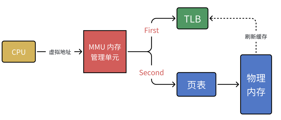 有没有提升效率的办法呢?计算机科学中的所有问题,都可以通过添加一个中间层来解决。MMU引入了新武器,江湖人称快表的TLB(其实,就是缓存)。