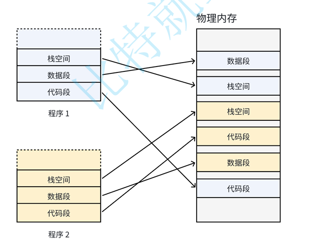 因为每⼀个程序的代码、数据⻓度都是不⼀样的,按照这样的映射⽅式,物理内存将会被分割成各种 离散的、⼤⼩不同的块。经过⼀段运⾏时间之后,有些程序会退出,那么它们占据的物理内存空间可以被回收,导致这些物理内存都是以很多碎⽚的形式存在。