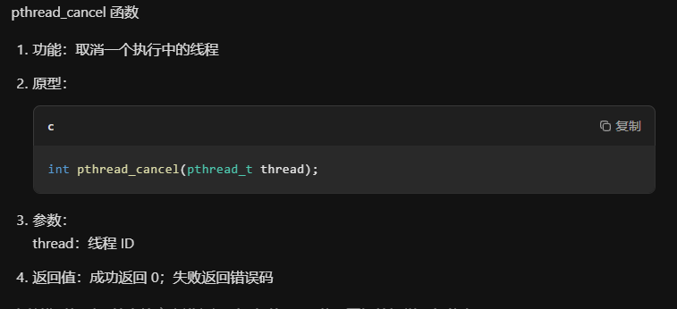 //pthread_cancle(pthread_t thread);成功返回0否则返回错误码