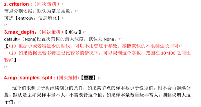 - min_impurity_split(同决策树):这个值限制了决策树的增长,如果某节点的不纯度(基于基尼系数,均方差)小于这个阈值则该点不再生成了节点,即为叶子节点。一般不改动默认值1e-7