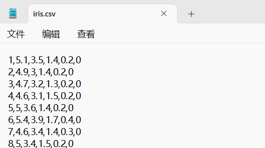鸢尾花数据之前使用过,但是我这里使用的是没有表头的