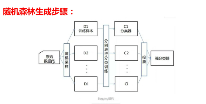 很多个决策树,把数据给每个决策树,但是这个数据是随机选择一些数据给一个决策树,下一个决策树在进行随机选取,每个决策树得到的数据不是百分百,且是随机的,很多个决策树虽然没有学百分百,但很多个一共就学了全部的数据,,除此之外,也不是所有特征都给一个决策树,特征也随机