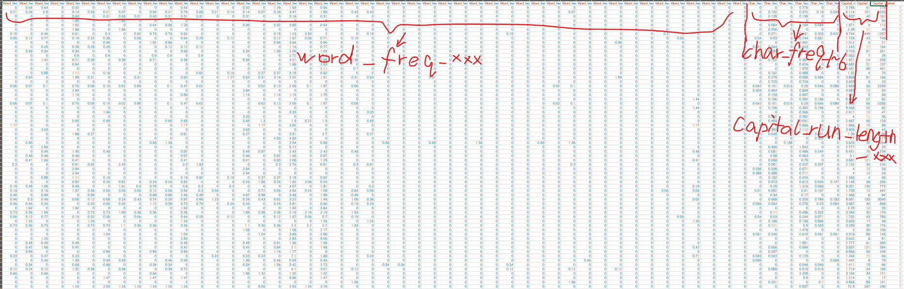 df=pd.read_csv("D:\learn\代码所用文本\spambase.csv")