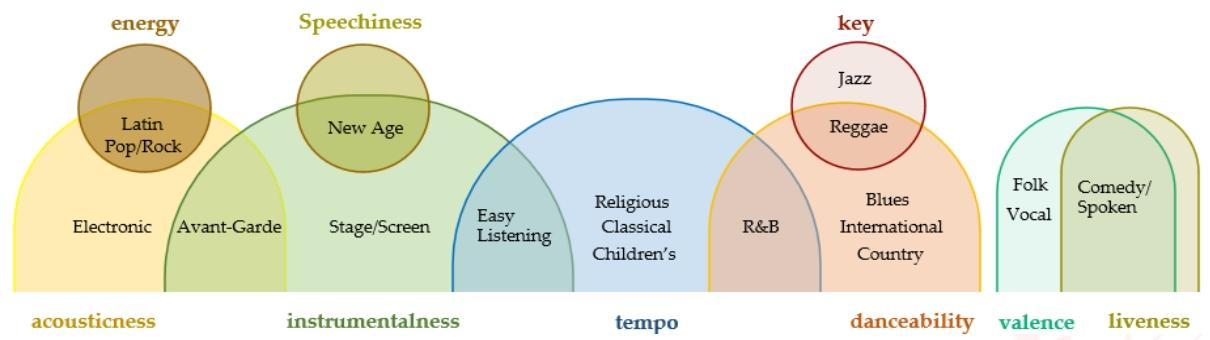 - 明确流派间的差异与关联,探索流派随时间的发展 ------ 不仅包括不同时期代表性音乐流派的发展,也涵盖同一音乐流派在不同阶段的演变;识别动态影响者的指标,分析特定流派的演变过程;