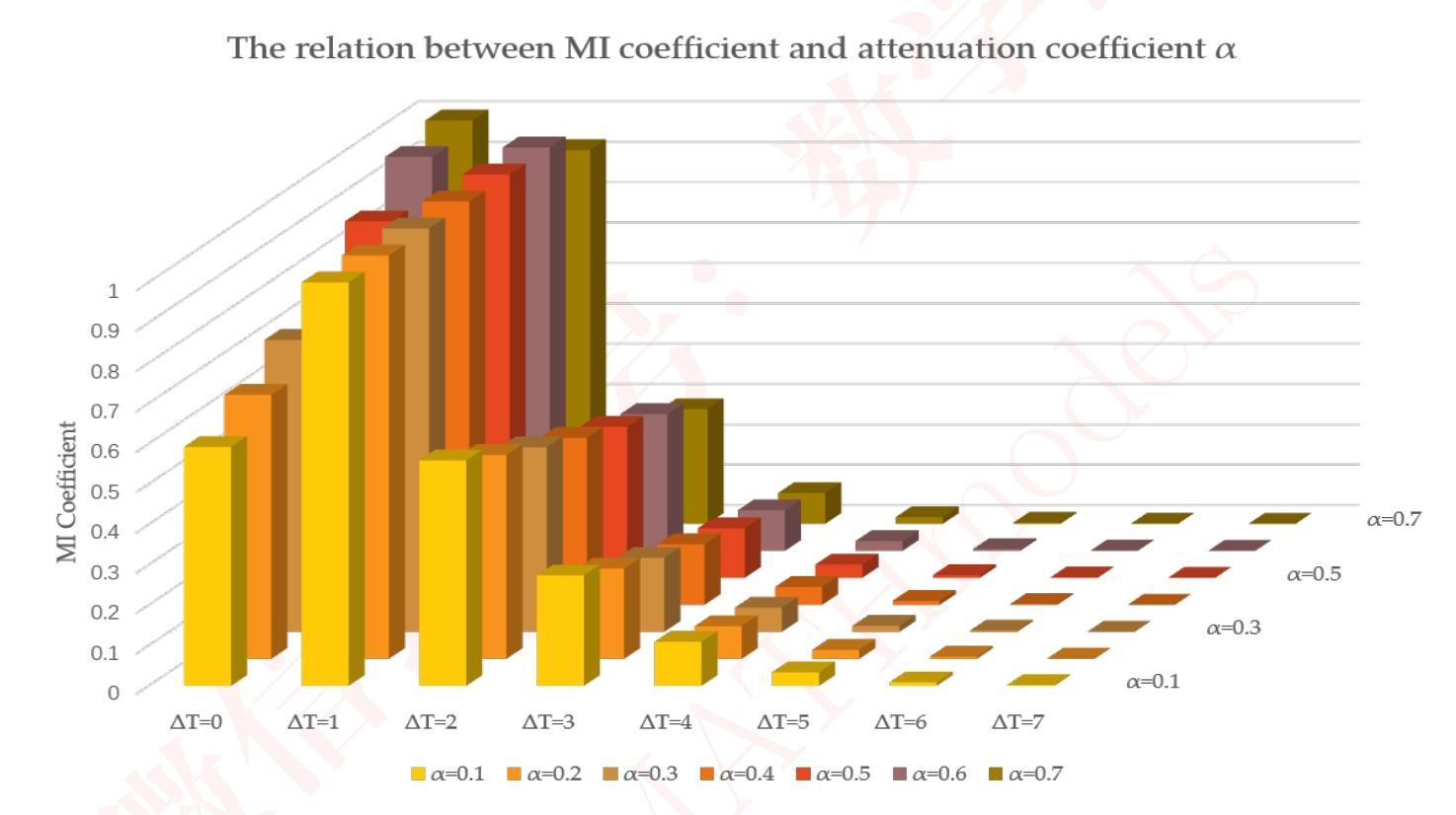 音乐影响力的评估对探索结果具有重要影响,不同的音乐影响力数值可能导致对最具影响力者的误判,这与音乐历史进程不符。然而,影响力评估的合理性取决于前文构建的冷却模型中的衰减系数。因此,本节将对衰减系数进行更深入的探讨。改变 α 可能会影响音乐影响力(MI)系数,如果波动过大甚至破坏了音乐影响力随时间的下降趋势,则需要重新考虑该模型。