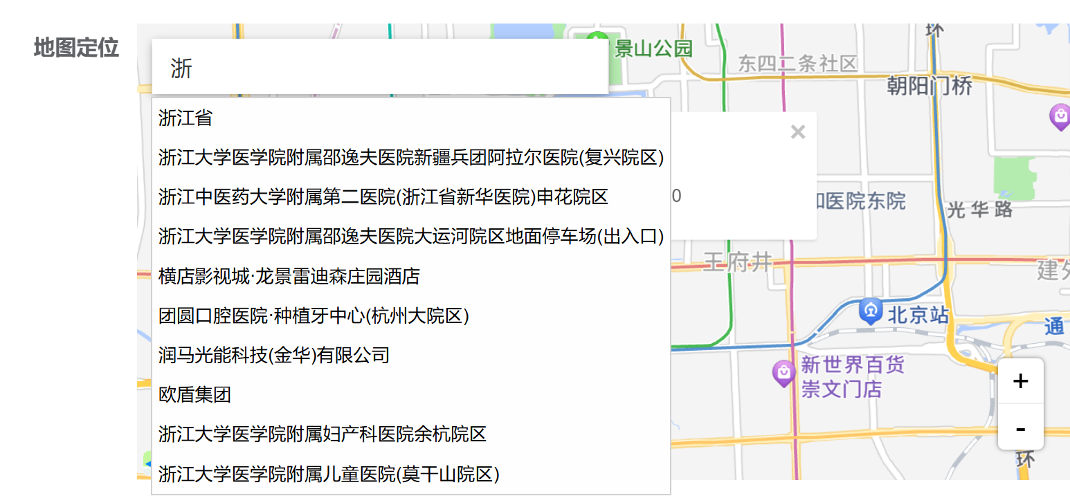 - z-index问题的根源: 当组件在弹窗或对话框中使用时,高德地图的自动完成下拉框(如.amap-sug-result)可能被其他元素的样式覆盖。这主要是由于以下原因:①弹窗通常具有较高的z-index值。②高德地图生成的DOM元素无法直接受Vue组件的scoped样式影响 。