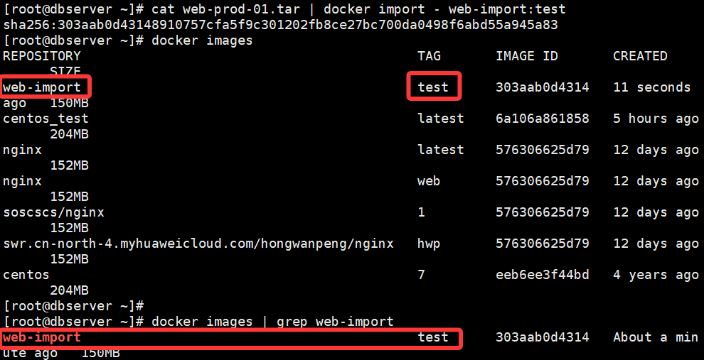 注意,导入先前容器打包成的tar包之后,不会创建容器,而是生成镜像。