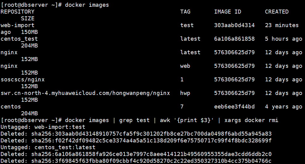 这里我只删除了某个特定的镜像,采取了grep进行筛选。