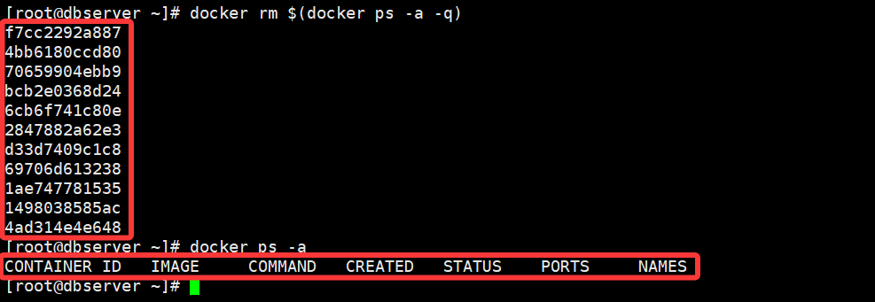 注意,这里正规操作应该是先停止容器,再进行删除,实在需要强制删除,可以在rm后添加f参数。