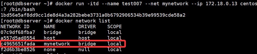 查看可以看到刚才设置的mynetwork自定义网络模式已经在列表中。