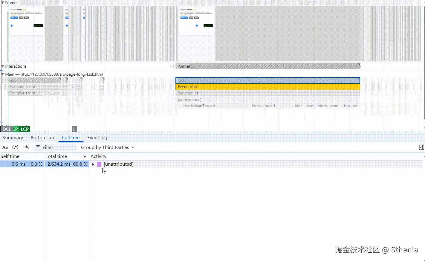 blockMainThread 几乎和长任务时间一致了,是导致卡顿产生的主要原因。