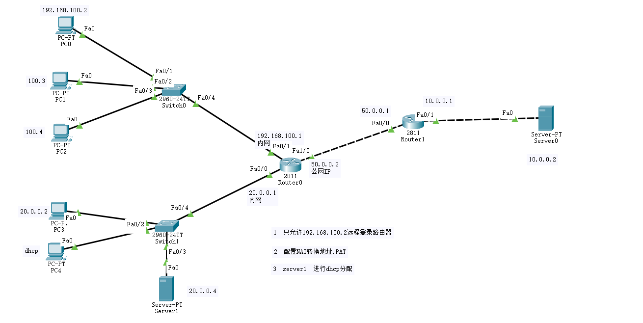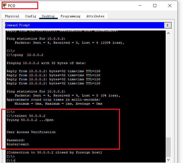 只有PC 0 可以远程登录