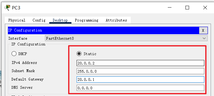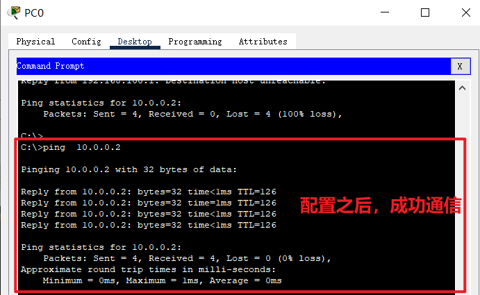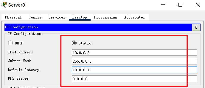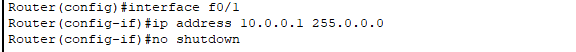 ip address 10.0.0.1 255.0.0.0 // 配置ip地址和子网掩码
