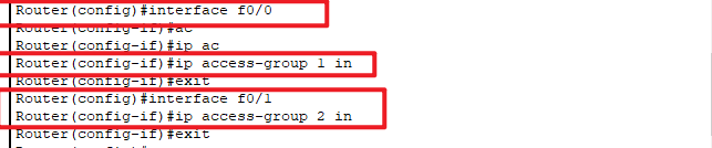 ip access-group 1 in // 将acl表1应用到f0/0