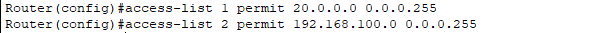 access-list 2 permit 192.168.100.0 0.0.0.255 // 创建表2,允许192.168.100.0网段通过