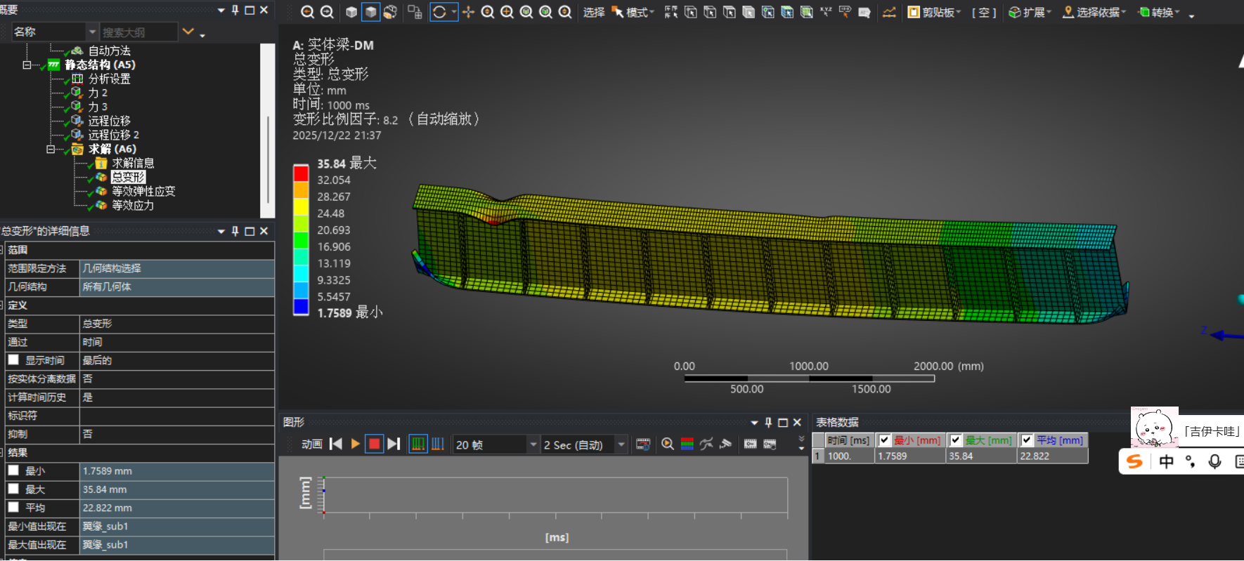 最大变形35.84mm,出现在翼缘加载处,