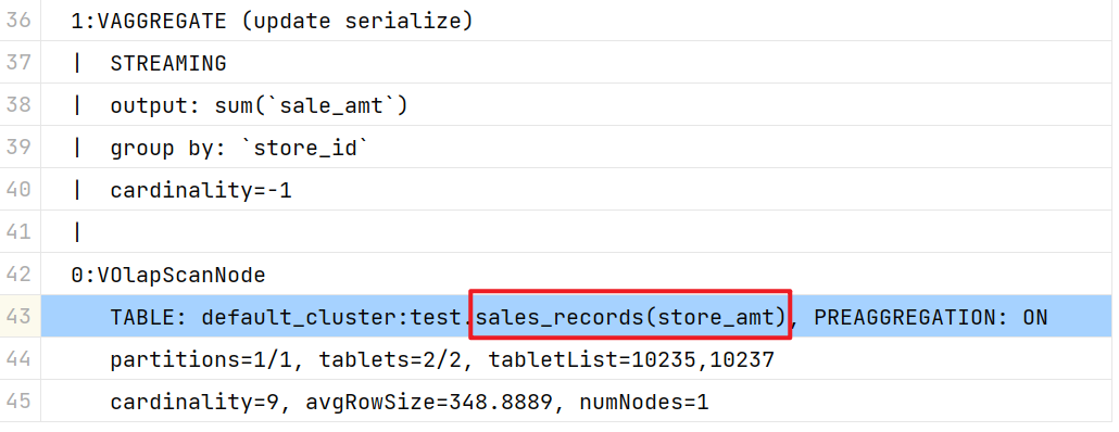 | | final projections: mv_store_id[#9], sum(mva_SUM__`sale_amt`)[#10] |