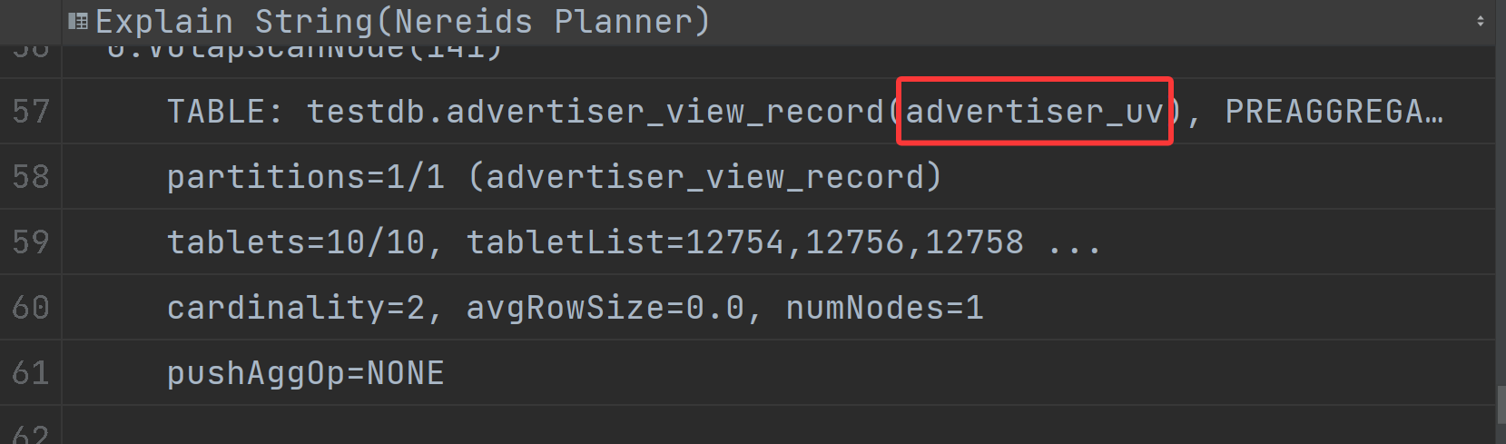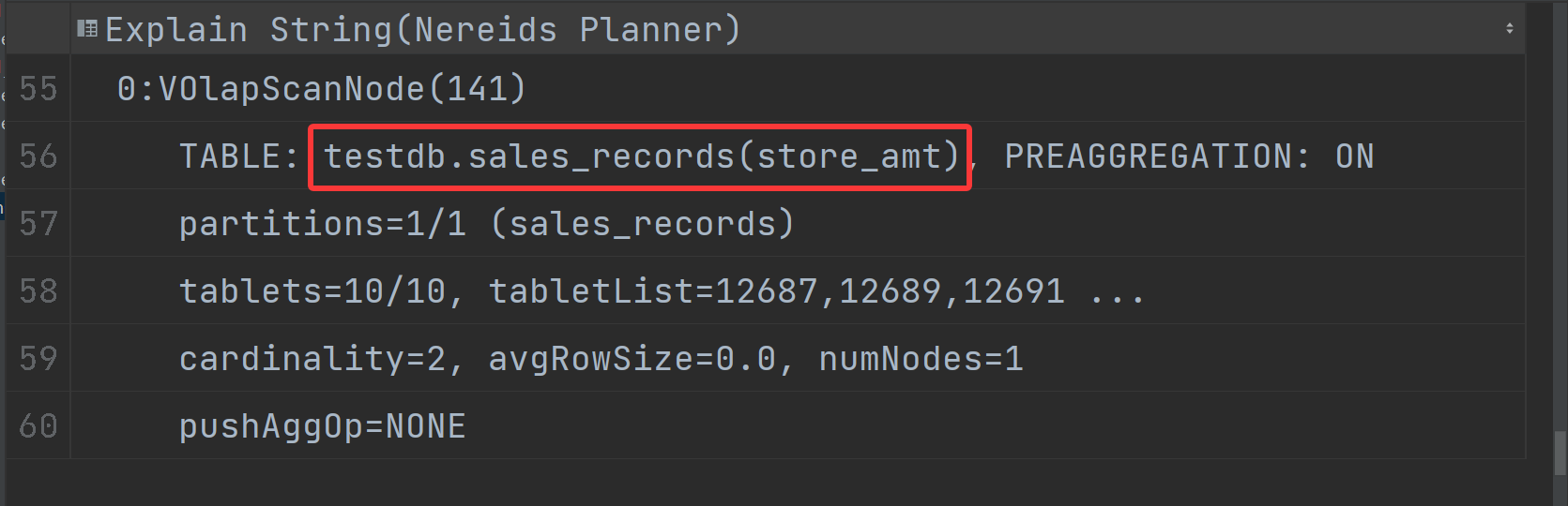 上面的查询就能自动匹配到store_amt。用户可以通过下面的命令,检验当前查询是否匹配到了合适的物化视图。