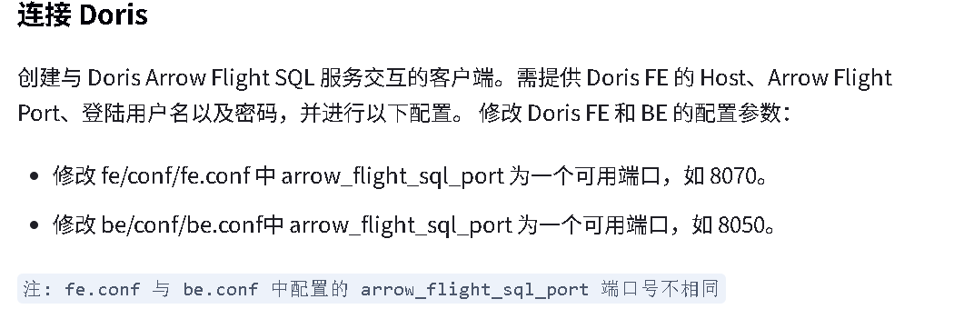自 Doris 2.1 版本后,基于 Arrow Flight SQL 协议实现了高速数据链路,支持多种语言使用 SQL 从 Doris 高速读取大批量数据。Arrow Flight SQL 还提供了通用的 JDBC 驱动,支持与同样遵循 Arrow Flight SQL 协议的数据库无缝交互。部分场景相比 MySQL Client 或 JDBC/ODBC 驱动数据传输方案,性能提升百倍。