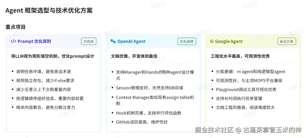 - 判断是否上工程:不是模型做不好就立刻上工程,应先检查 Prompt 是否符合原则;关键场景追求成功率时应直接上工程;其他情况可商量,要习惯模型的概率性风险,实验是检验 LLM 的唯一真理