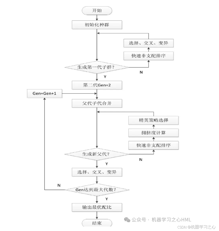 3) 通过遗传算法的基本操作产生新的子代种群Qt+1, 将Pt+1与Qt+1合并形成新的种群Rt, 重复以上操作, 直到满足程序结束的条件。