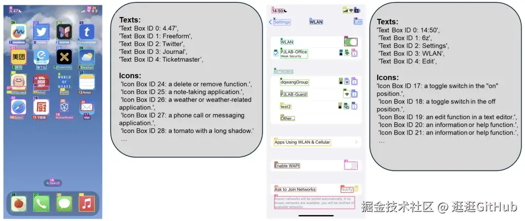 Set-of-Mark (SoM) 提示:在屏幕截图上的UI元素打上数字标记 Label,让模型只需输出数字即可定位元素,类似于特斯拉自动驾驶的视觉标注逻辑。