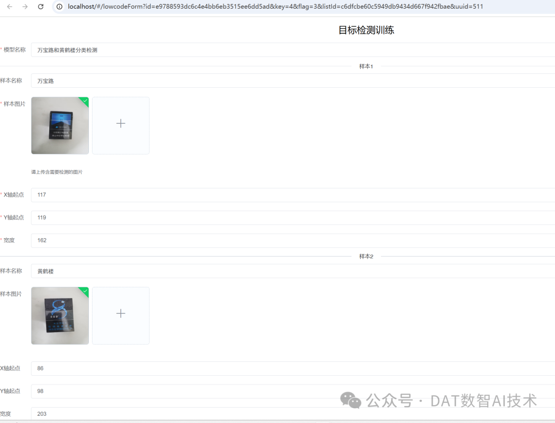 4、数据录入后,点击模型训练按钮,开始生成训练数据,并训练模型