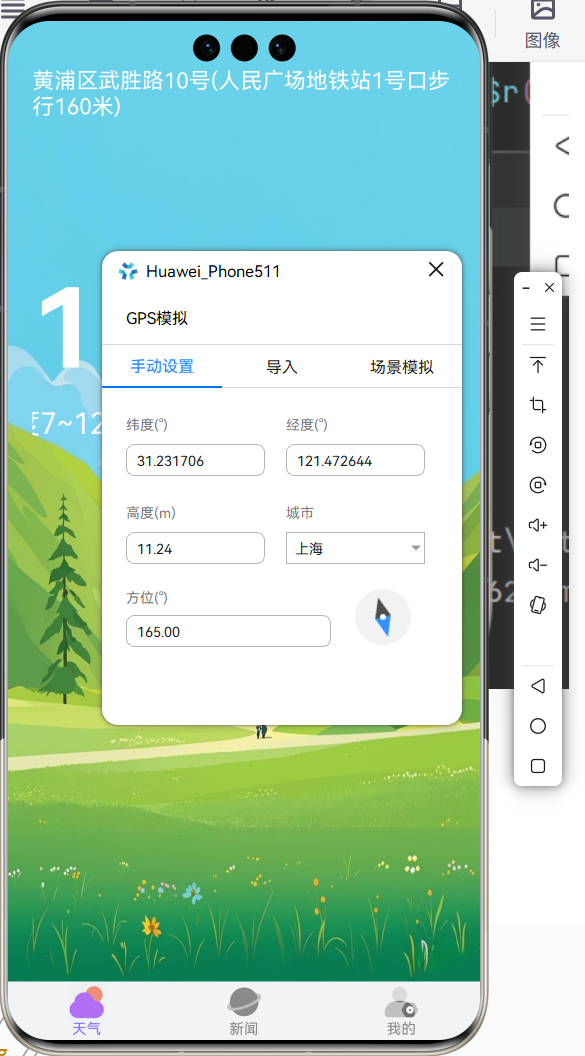 自行申请高德地图api之后填入key,填入city的代号,可以测试此处weather的api是否可用,此处显示"请求成功",在鸿蒙应用中才会显示相关的天气信息。